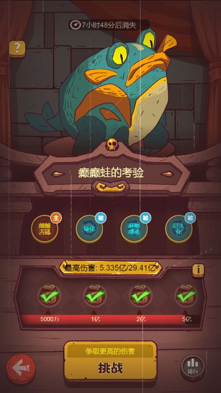 《咸鱼之王》癫癫蛙低配阵容打出五亿伤害