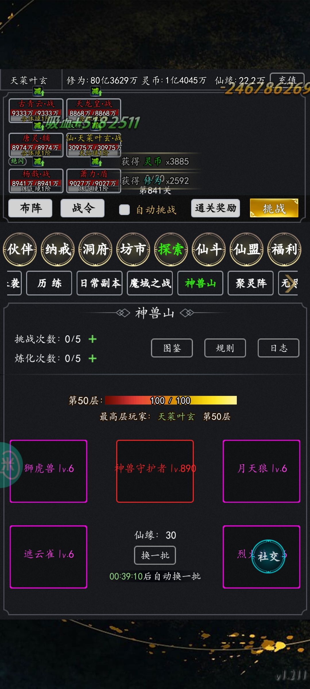 ~首先解锁神兽山这个玩法,需要玩家的主角到达洞虚10这个境界就会解锁,而神兽山的次数又是每天有限制,所以越早到洞虚10越有优势喔![[嗒啦啦4_比心]](https://img-tc.tapimg.com/market/images/d28961d9ef2d62e62333b8d17a8612dc.gif)