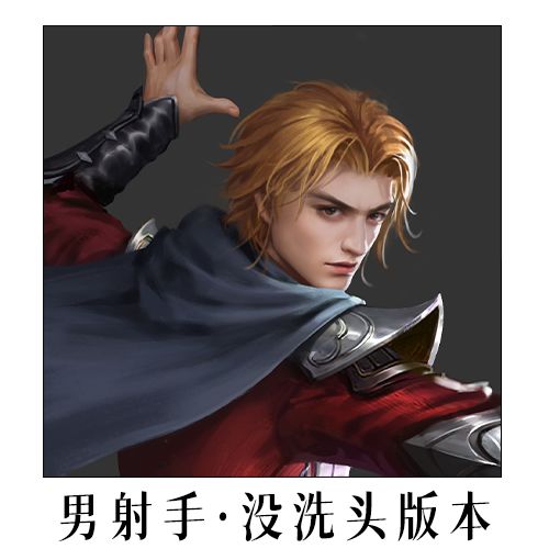 为了配合射手敏捷的丛林猎手形象,我们将绿色与金色作为角色主体颜色,我们想象中的男射手,是灵动清爽的,但是第一版的他长这样↓↓↓↓