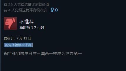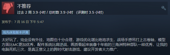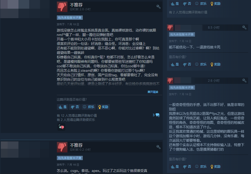看在周董这么给面子的份上,原本对FPS游戏涉猎不多的我也决定破例去体验一下——然后就被Steam页面上满屏的“不推荐”给光速劝退了。