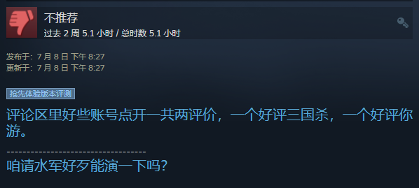 早在上个月月底,Steam评论区就出现了一张疑似官方出价15元一条买好评水军的截图,再想想到这段时间游戏好评度不合常理的大幅提升,好像还真有这么回事。