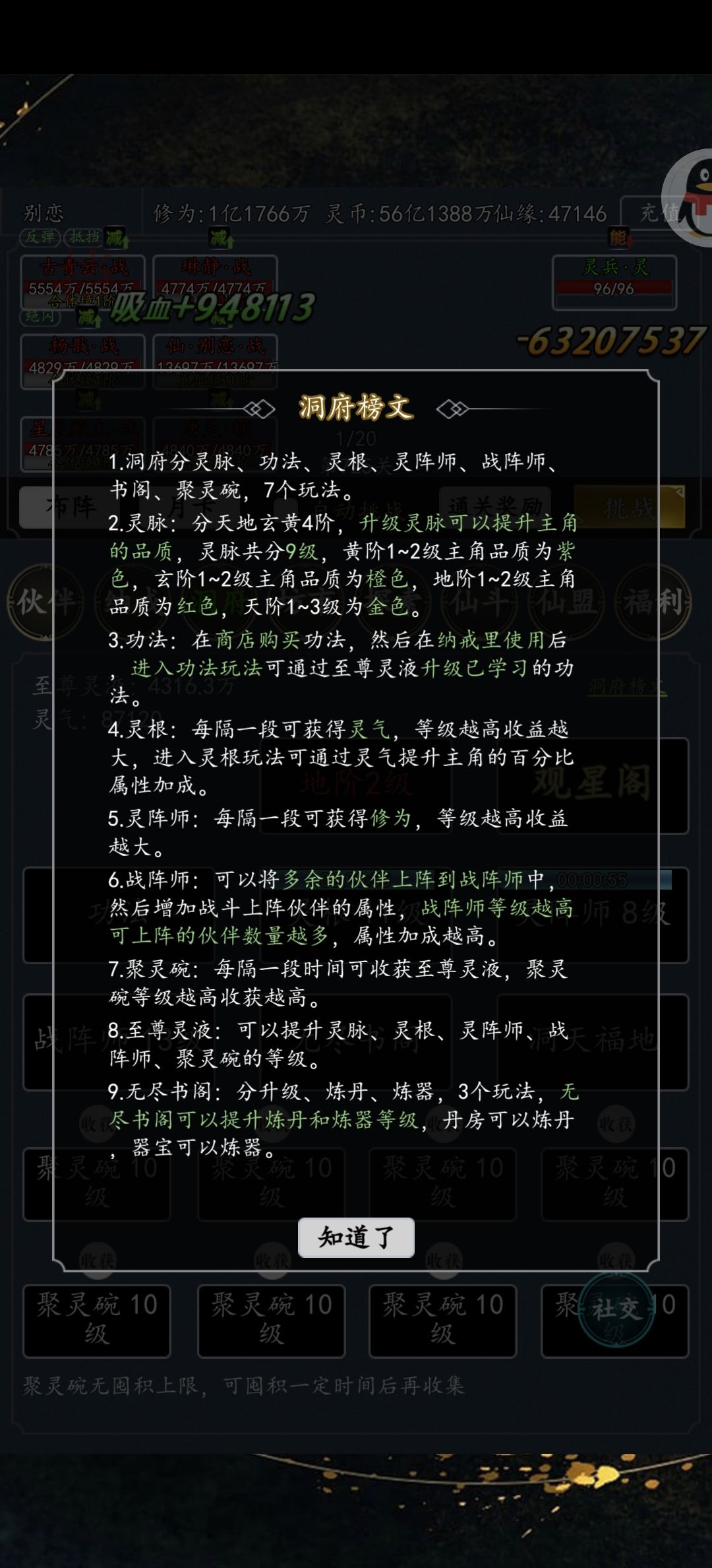 这9个功能除了洞天福地和观星阁外在洞府榜文中都有介绍,在此就不再重复。