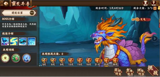 从BOSS的技能不难看出,此关卡BOSS龙龟以冰冻攻击为主,配合减蓝和反伤效果。
