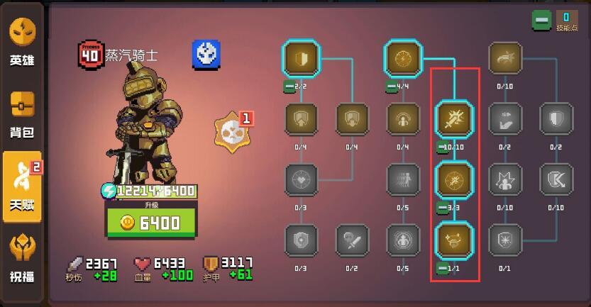 推荐选用骑士,天赋优先第三列点满,高层深渊几乎都是秒杀,不是你死就是我亡,骑士技能无敌加上天赋增加输出,首选;次推荐幻影枪手,天赋优先点满左边两列,技能减速加弱点输出,也是不错的选择。当然只是推荐,自己用的顺手的才是最好的。