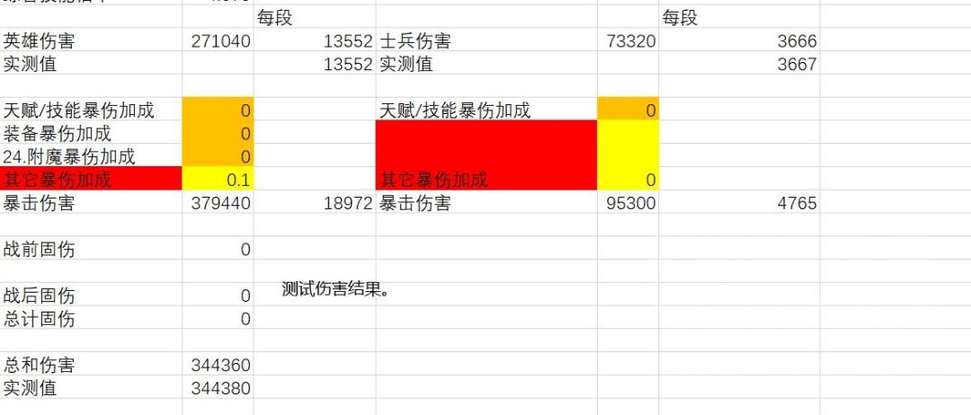 ”其它固定值“其实是为竞技场留的,不过我巅峰纯混皮肤,这表格用于竞技场也不方便,就不测试了。