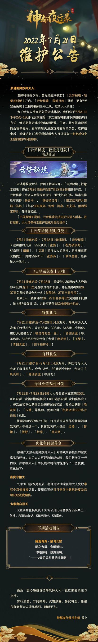 神都夜行录开发组 敬上