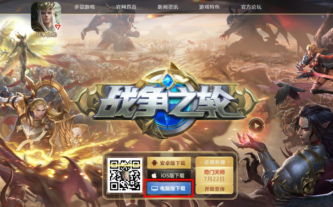1、前往战争之轮官网(https://zz.duoyi.com/),点击电脑版下载,下载并安装多益战盟