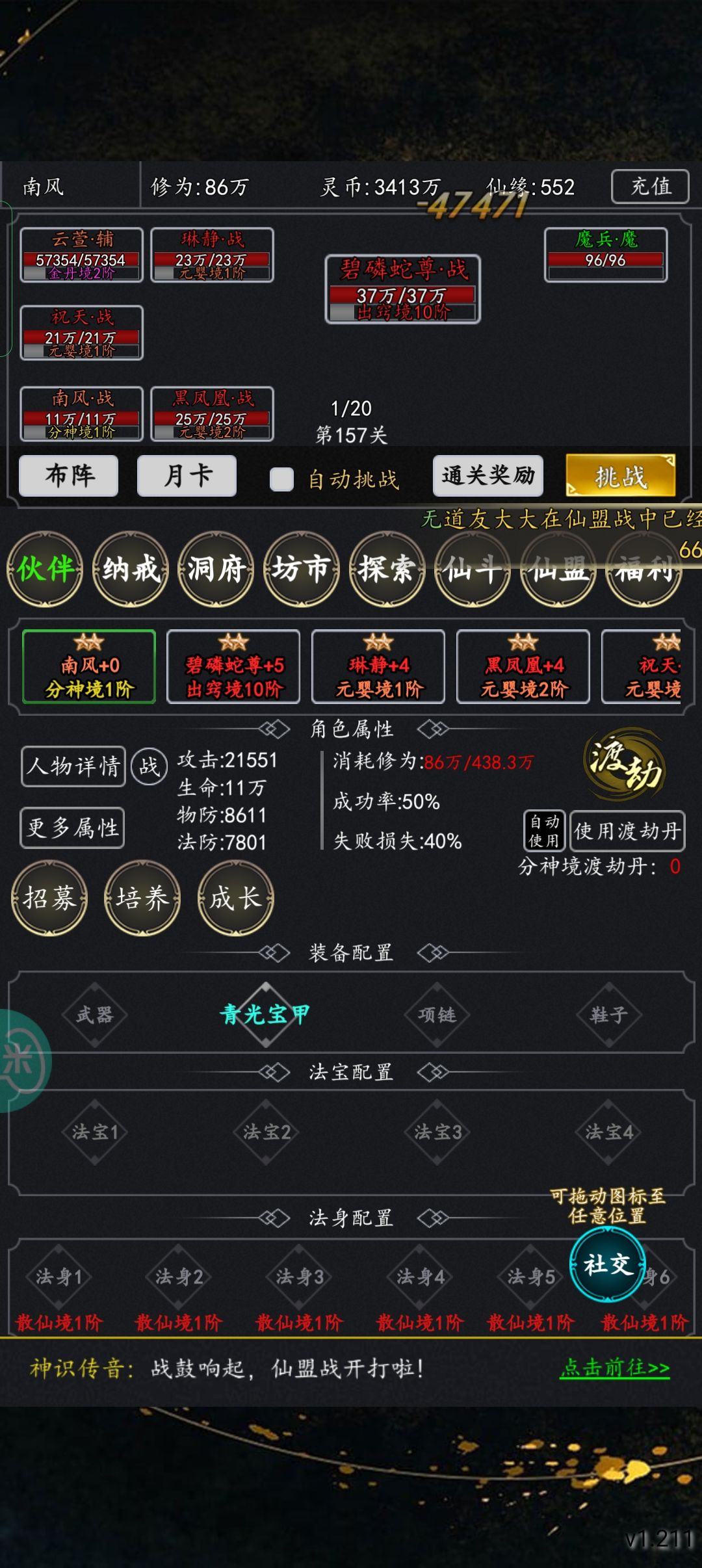 仙盟阵法点攻击,灵根也全点攻击。