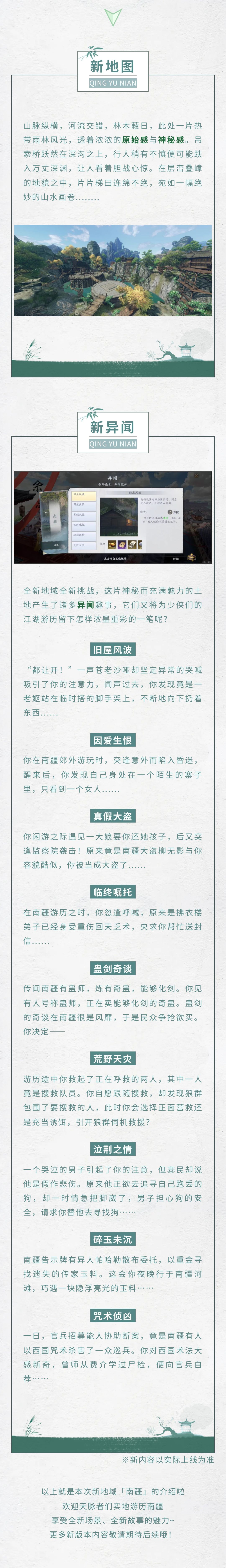 各位天脉者们好,月底更新预告~一起见识下南疆的美景吧!