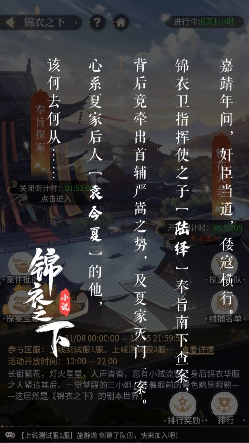 1、活动期间三小姐可以组成探案小队在奉旨探案中不同区域进行探查。