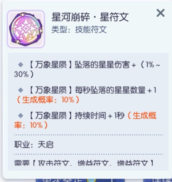 如果叠5星,很有可能会因为人品不好造成10秒无法爆发的情况,这也是现在星落流实战感觉不行的原因(看脸),只有大佬靠堆伤害来秒,而且需要做热身运动,不是很亲民,符文也是需要刷三黄,这不是一般人玩得起的。