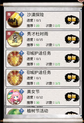 主页面新增日常按钮,内含玩家可以进行挑战的大量日常活动、任务、小游戏等,点击参加还可一键寻路至对应接取任务地点,非常便利~