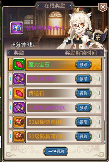 3、在线奖励领取修改:增加一键领取在线奖励功能