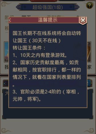7、国家主界面增加说明按键:玩家可以在其中查看国家相关说明