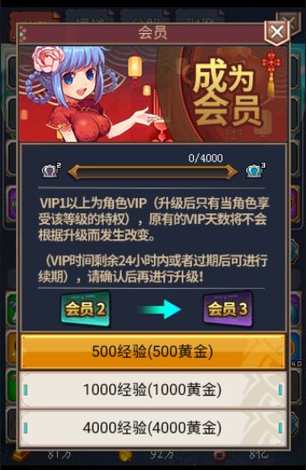 VIP界面全面升级,拥有华丽的界面与更加便捷的升级方式,新增1000经验与4000经验档位,使升级VIP更加快速。