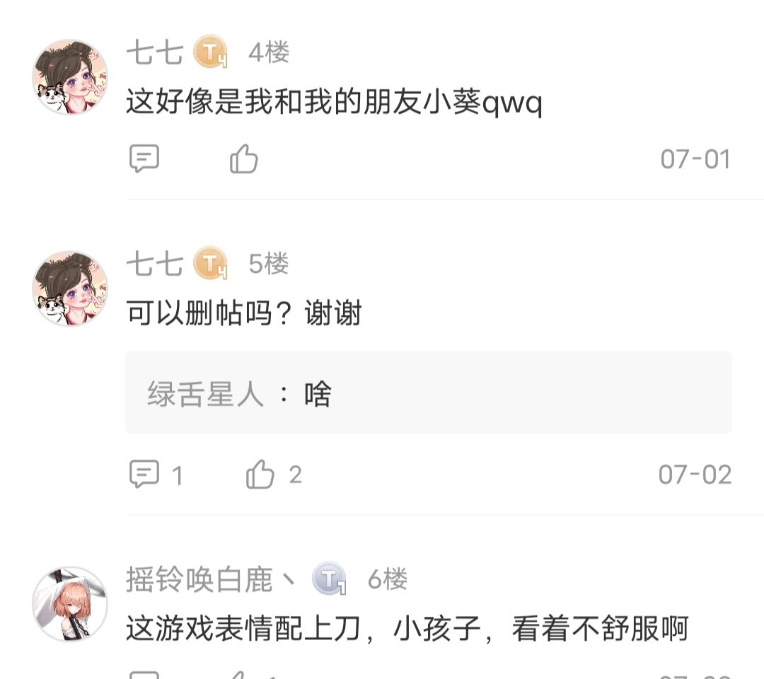 关于我一回游就被七七要求删贴的事