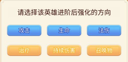 1.7 关于进阶。人物满20级可以在圣殿消耗100高阶人物碎片和30W金币进阶,进阶后人物回到1级,属性回归初始状态,铁匠铺强化清零。30级进阶并不会比20级进阶多属性。进阶后开启第4个装备格,并且多出一个每2级可以升级一次的被动技能。被动技能可以从以下6项中选择一项进行强化。以后想更改强化项的话,可以重设,就是进阶材料需要再付一次。