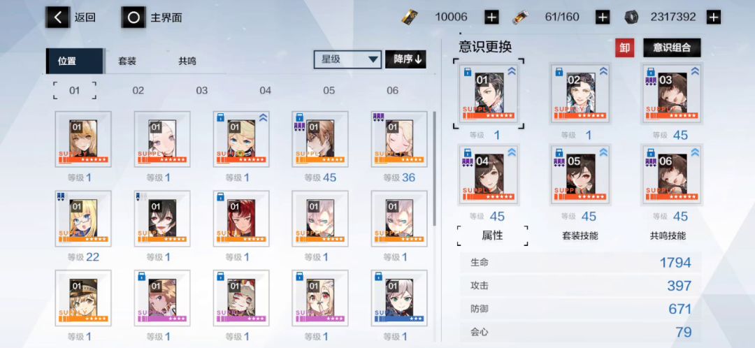 重养一组4夏洛蒂,搭配S阶段养的2库莉珂,把共鸣洗成6攻会+6核心,专门用于打囚笼,有富余就给456三个意识超频。平时打战区、诺曼复兴战那些还是用SS阶段那套2列文。