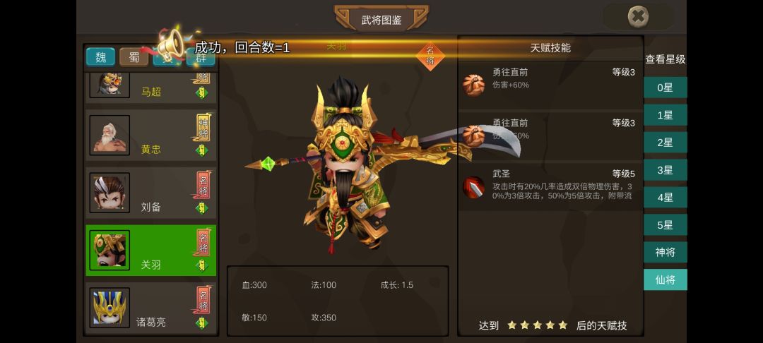 神将关羽,属性优先伤害,分裂,连击,暴击,只要装备牛1换4不是梦