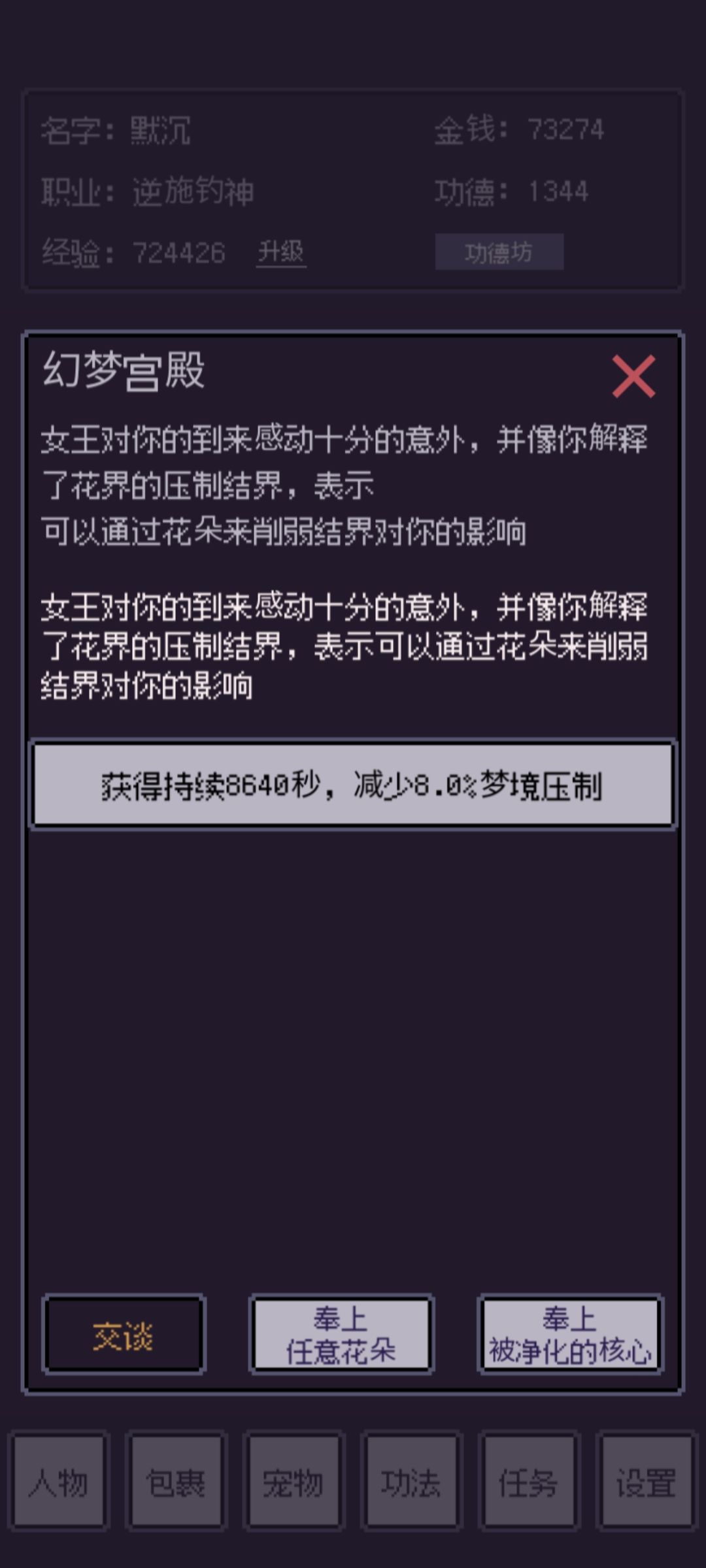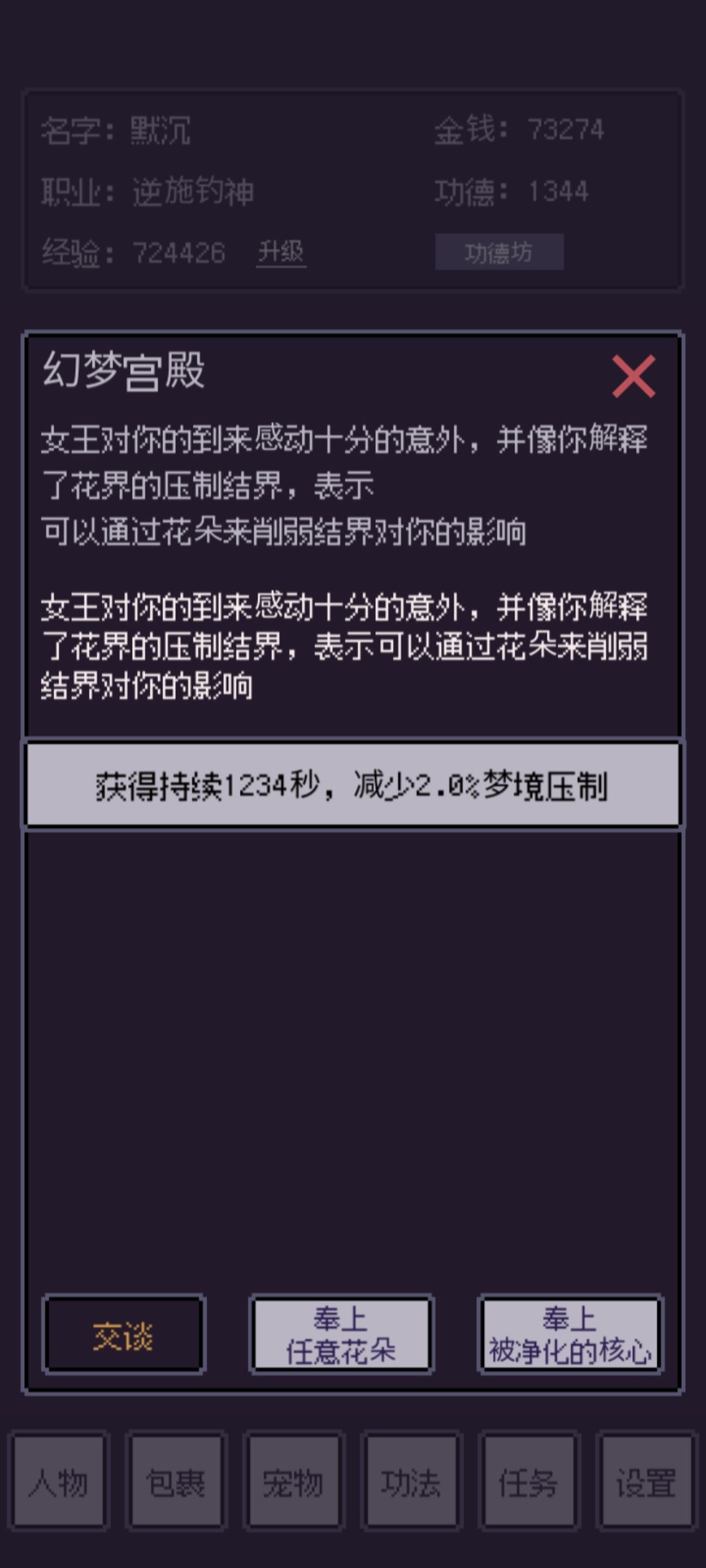 打不过可以在幻梦宫殿献祭花来削减压制效果