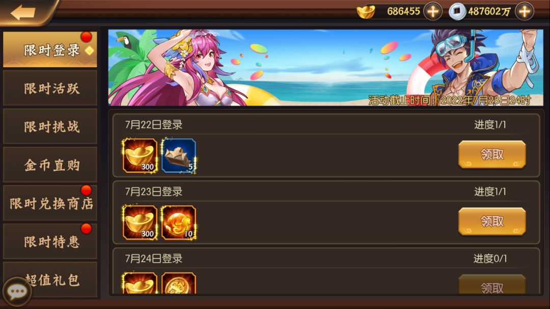 ⭐活动规则:活动期间,每天登陆游戏即可领:元宝、初级官印、幸运金币、极品零件、科技道具种子、红色传记等好礼你来领取!