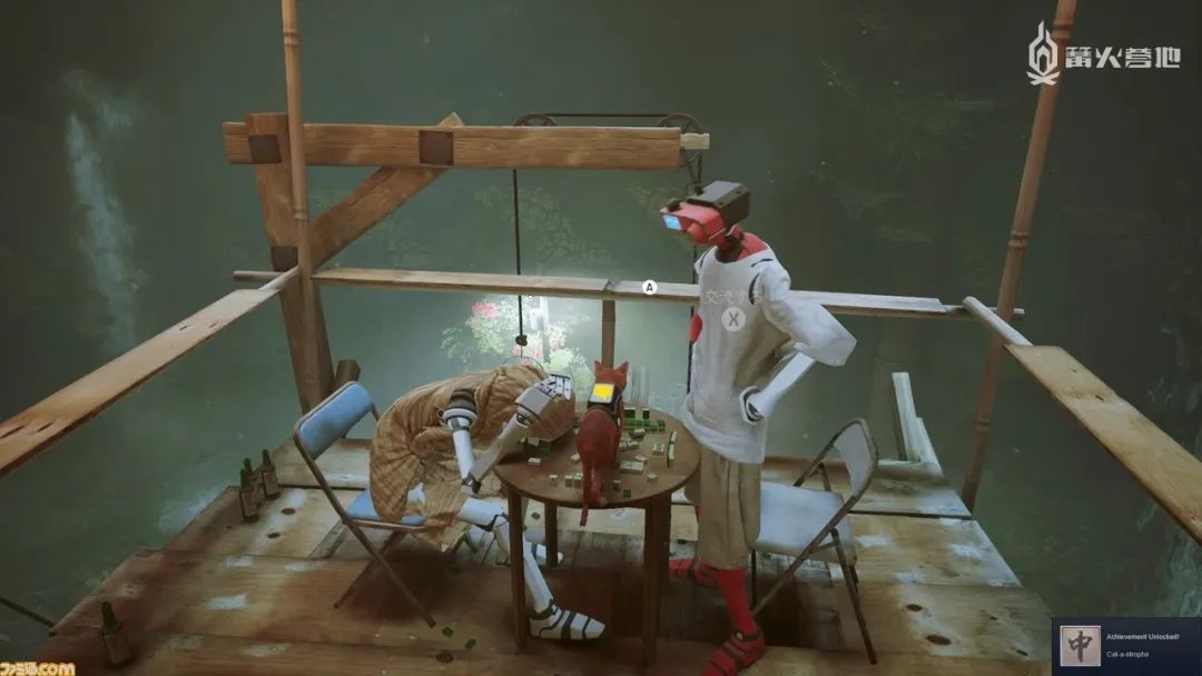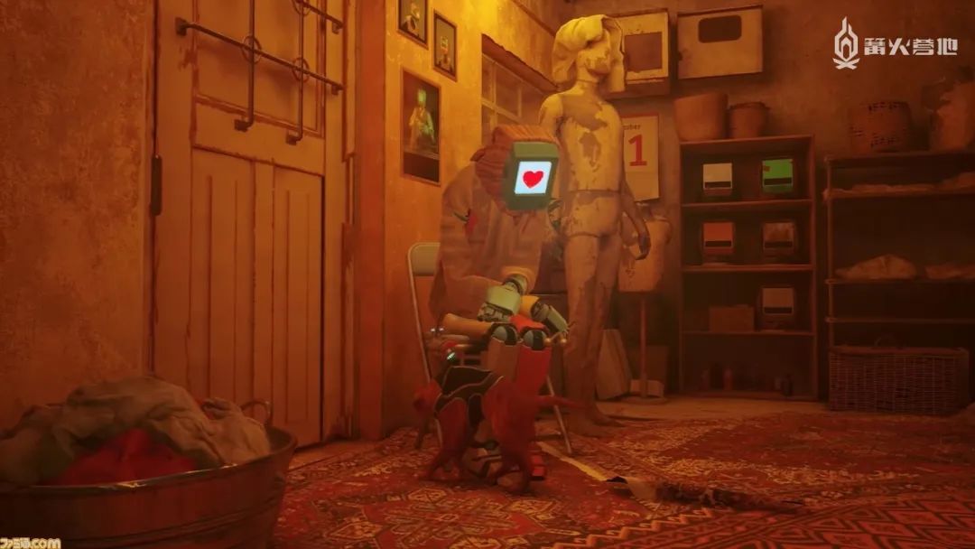 举个例子,游戏中玩家可以去蹭特定机器人居民的腿,但具体的动作和姿势都与狗做类似动作的样子完全不同,一眼就能看出是猫的行为方式。脸朝向其他方向的同时弓起背部进行磨蹭的话,机器人居民们还会高兴地显示爱心图标。