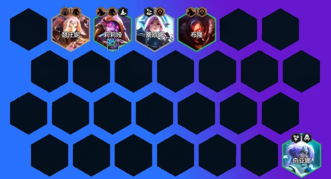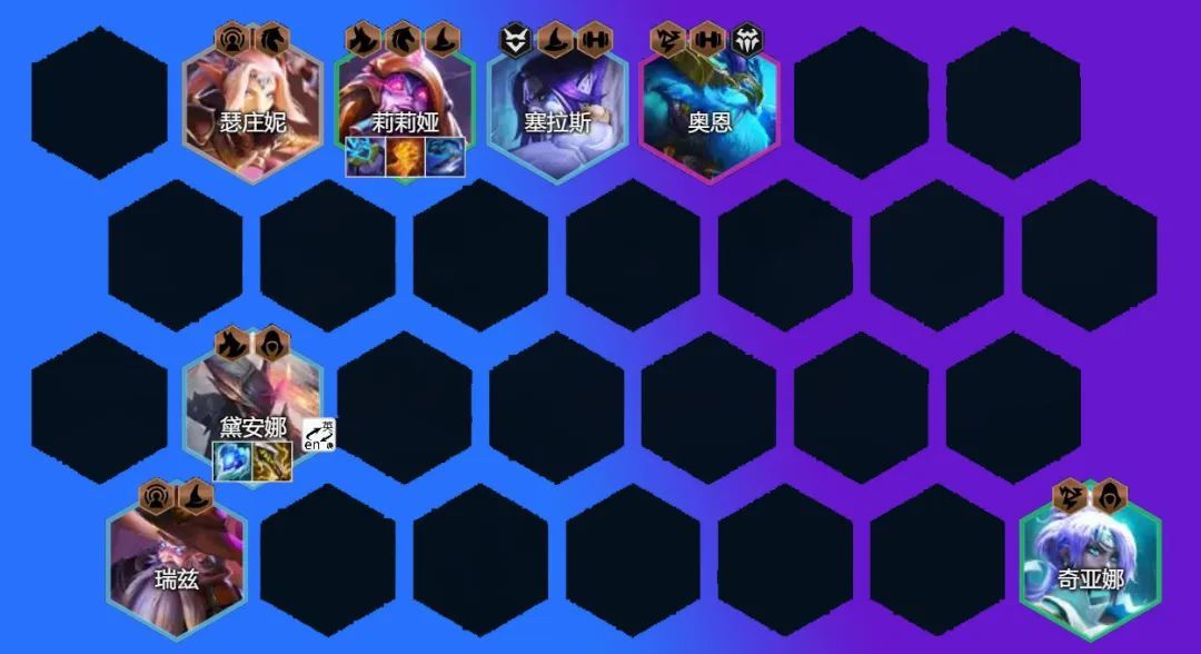 莉莉娅:离子火花+正义+巨杀/珠光离子火花:必备装备。莉莉娅主要靠技能打伤害,离子可直接降低附近2格子敌方棋子50%魔抗,可较大增加莉莉娅的输出能力。正义:正义有保底的15双攻和15%的全能吸血,物理随机到哪方面对高坦高输出的莉莉娅都能带来较高续航与输出能力。巨杀/珠光:这两件装备。都是为了增加莉莉娅的输出能力,巨杀对前排伤害更高些,强度会略高于珠光。黛安娜:冰心+无尽+输出装黛安娜是这套阵容的副C,刺客羁绊让其开局跳后,携带冰心能让敌方大部分棋子降低攻速,降低敌方输出节奏。第二件建议无尽,黛安娜能3星的情况下,携带无尽输出强度极高,能可秒脆皮C位。第三件装备可看情况选择出装,输出装与续航装备都可。赫卡里姆:阵容所有的坦度装备都给予赫卡里姆就好,比较建议鸟盾。巨龙圣坛选择