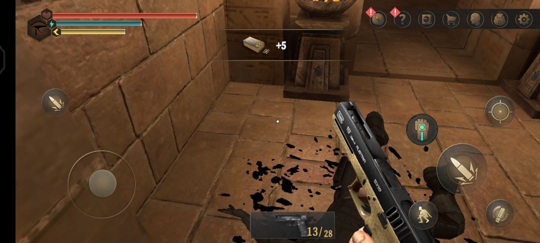 41.击破石墙,不要着急,路过机关后,前方右转,在地上可以获取5发手枪子弹
