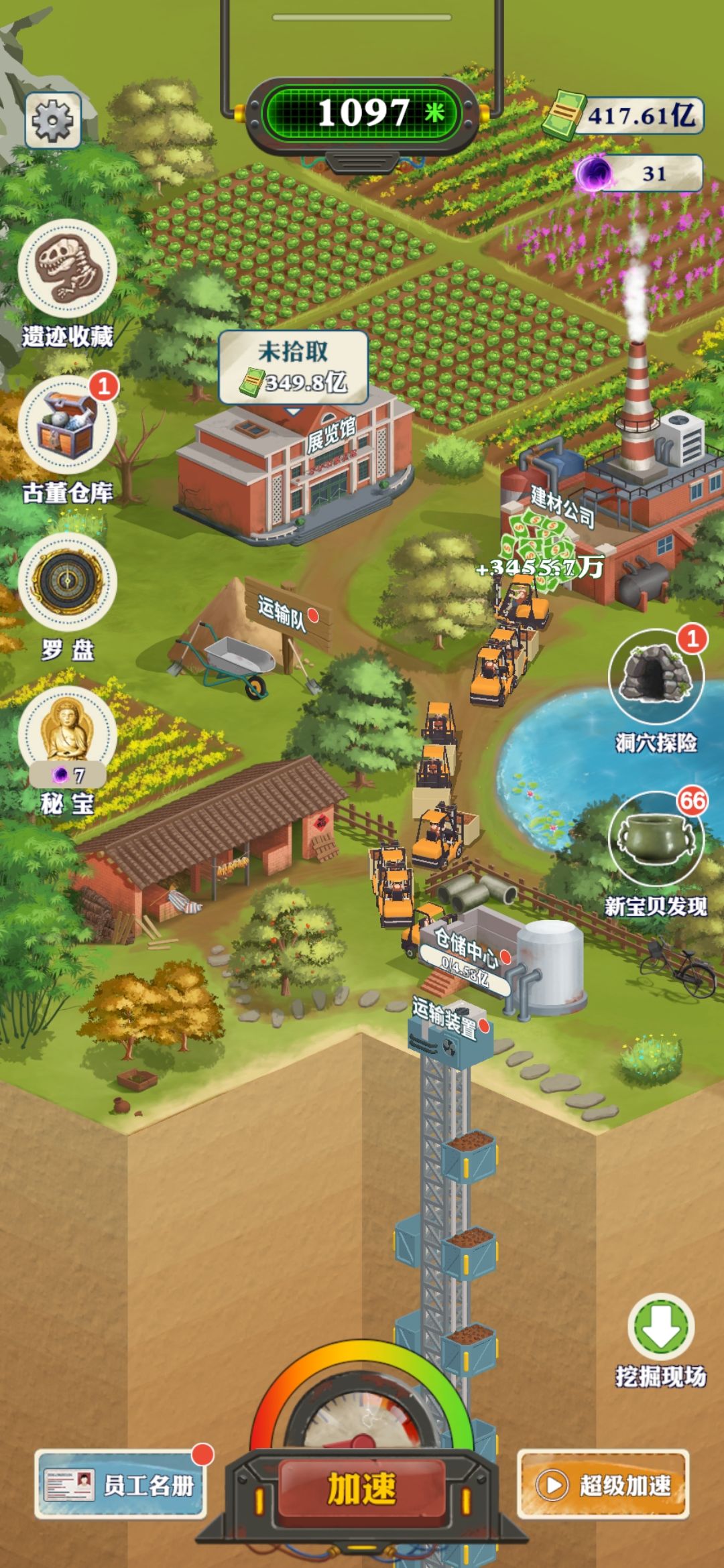 人物到225级再升级就不会有别的反馈了,但是还可以继续花钱升级。设备升级到最大级就好像无底洞一样不停升级升级。我挖到了一千多米也没有任务可做,也看不到底,但是总体用了不多一个星期吧。估计再过两天就不会玩儿了