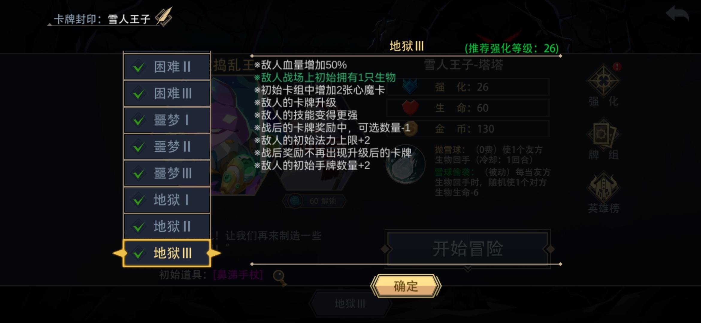 冒险模式卡组很难成型。只能挑选优质卡牌过关。