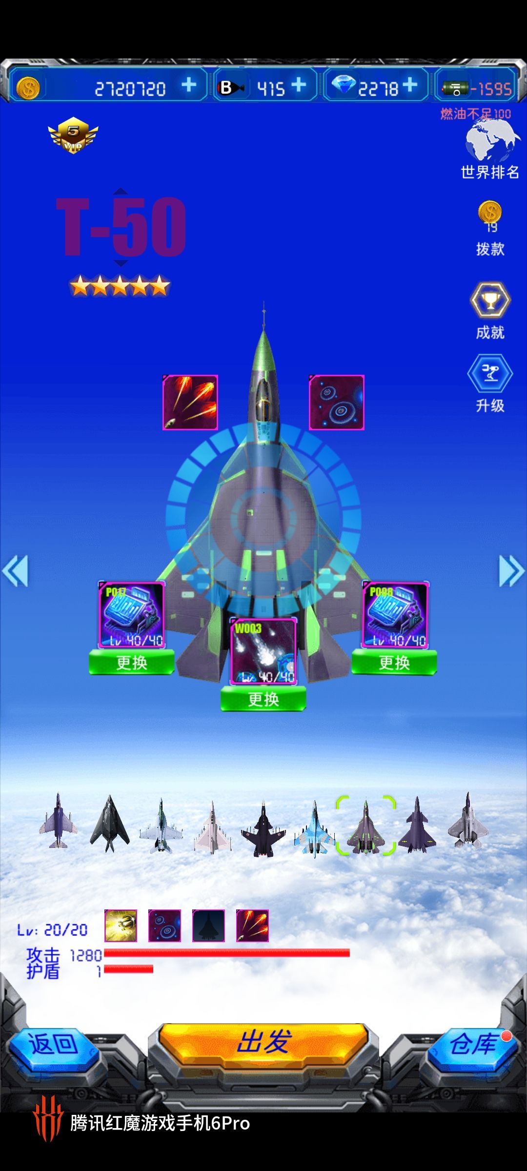 其他飞机,除了装备的那俩箱子(主要箱子材料没有,钱多的是),也是完全体,战机星级都升完了,所有其他升级也都完了