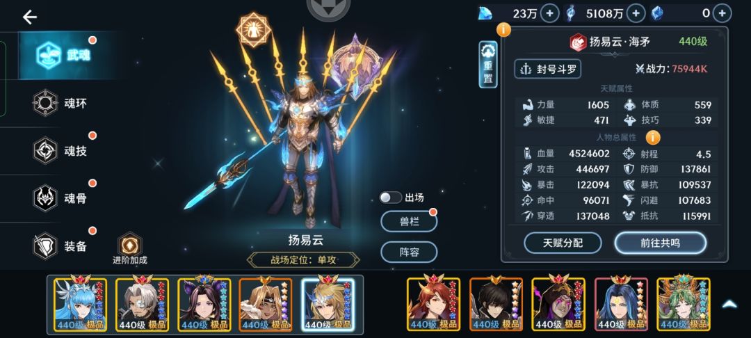 暴击队的最强主C,拥有着必中被动,而且必定暴击,无疑是前期开荒最好的选择,之所以是用杨易云暴击队开局是因为他的条件非常好满足,只要坦克活着能闪避攻击就行,因为一般情况下,坦克是整个队伍防御最高的,除非是有强势差距过于大,导致唐三的护腕等级过高超过坦克这样的情况,如果依然不影响他易云自身的强度,词条配置是全套暴击增伤就可以解决的,那么词条差距到底有多大呢?新区有不少玩家都反馈他的杨易云都是25万或者是30万攻击压根打不动魂环,一般都是在3000多难度左右不能推了,这个就要考虑到词条问题和星级问题了,我自身的准神网易云是25万攻击到达的1.8万难度,队友是22万攻击,依靠的就是全套暴击增伤的收益,甚至只有6~10条暴击增伤词条的网易云在前期都可以是个质变,一个要求容易满足,而且中后期词条根本就不要换的角色,相信没有人不想用的,而且在PK方面,网易云也依然可以弥补掉群攻马红俊收割不掉坦克的尴尬