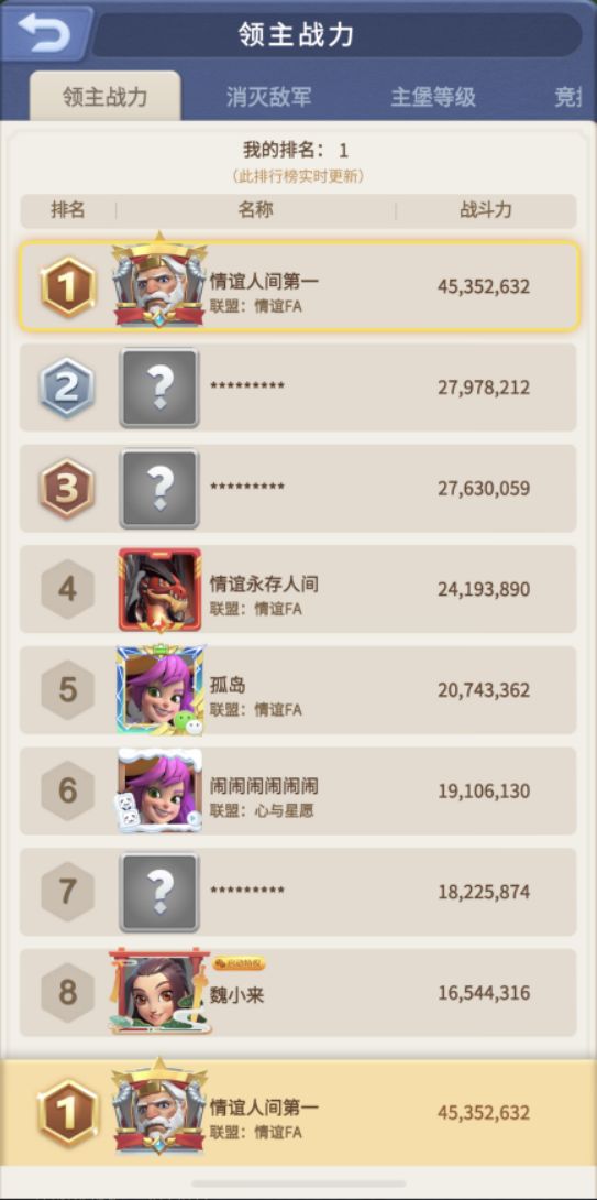 情谊人间第一帅:目前战力45352632,主要负责带领大家打架