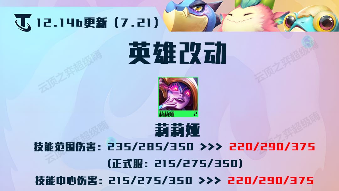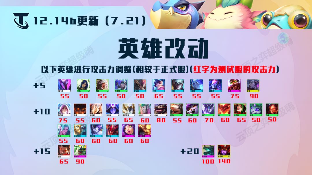 当然了新版本还加强了部分英雄的攻击力,不同英雄的攻击力加强程度都是不一样的。具体削弱情况下见以下表格: