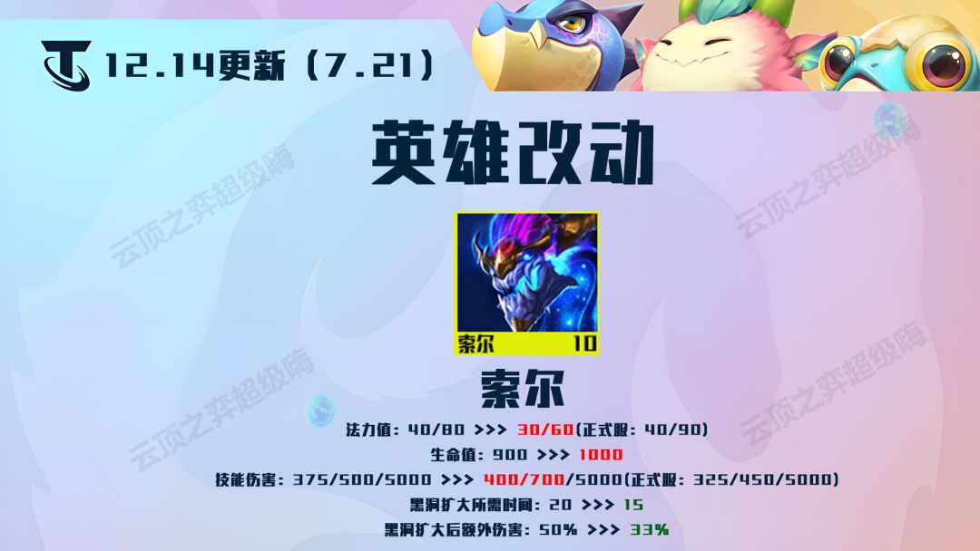 云顶之弈12.14更新:43项改动全览,赌狗、敖兴大削弱,索尔崛起