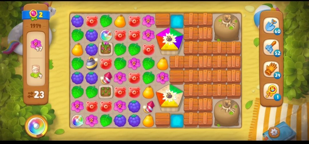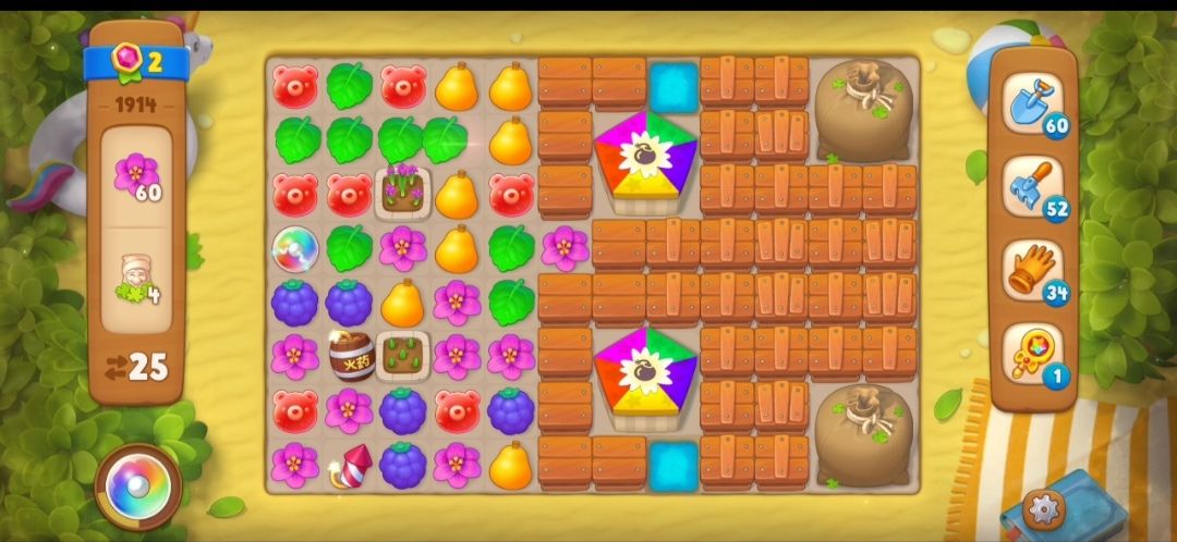关卡目标 小矮人×4、粉色小花×60