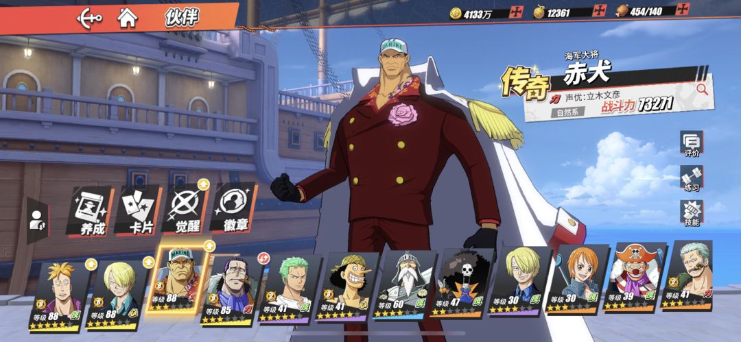 评测其实我现在还不知道赤犬有几招无视攻击。我就知道2技能追加技可以锁怪。激斗技可以聚乖也好像是有硬值的。一技能好像也是可以有硬值。所以我全程下来boss都没怎么打到我。这里附上面板