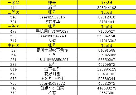 恭喜上面的幸运儿,