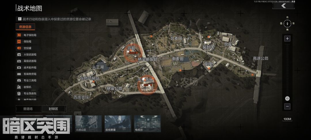 农场封锁区有4个空投罐2个免保,普通图只有装卸区上面那个空投罐,这个图还有烧焦的奖励箱子在北麦田上面一个树底下,那个箱子概率出装备。免费保险箱在马厩二楼,还一个在汽车旅馆二楼。