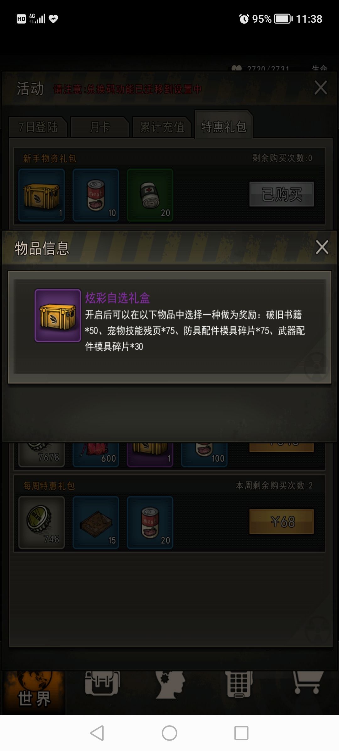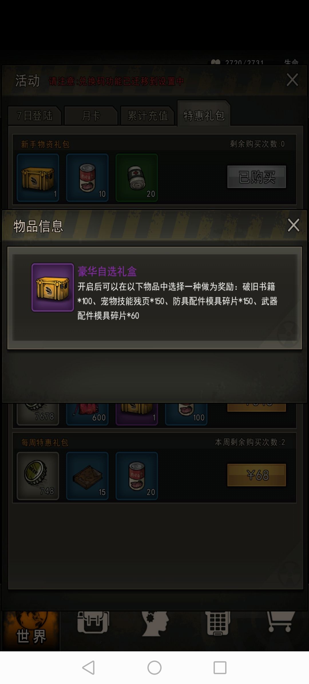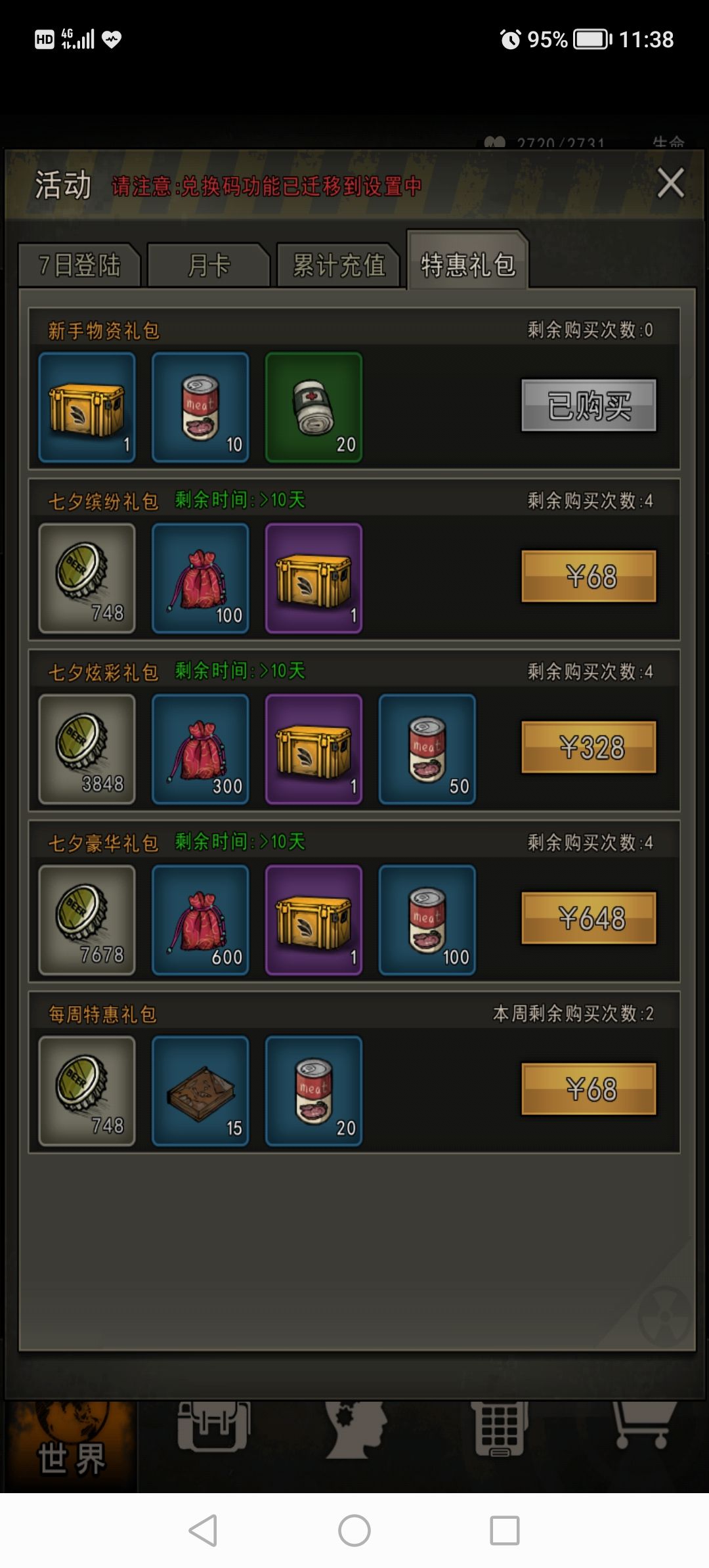 相当于68块氪了748+840*2+150+450+14*10=3168-1440=1728盖
