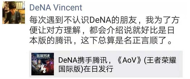 (DeNA是王者荣耀的日本代理,游戏名改成了《传说对决》)
