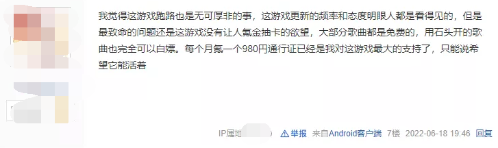 尤其是对于音游而言,氪金的驱动力确实是一个相当复杂的问题。像雷亚的Cytus、Deemo、Voez等音游就坚持选择以售卖歌曲作为首要付费点,像LL、邦邦等音游就将抽卡作为主要付费点。但无论哪一类游戏中,客观上打歌打得好不好,都只与玩家本身的水平挂钩。在拥有稀有度更强、技能更好、练度更高的卡的情况下,玩家打歌得到的分数确实会越多,得到的游戏评价会更高,但无论评价如何,都不影响玩家拿全连或全perfect。