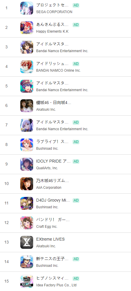 另外,实际上日本“音乐游戏”畅销榜前列中,真正严格上能算是“音游”玩法的游戏,其实也没有几个。