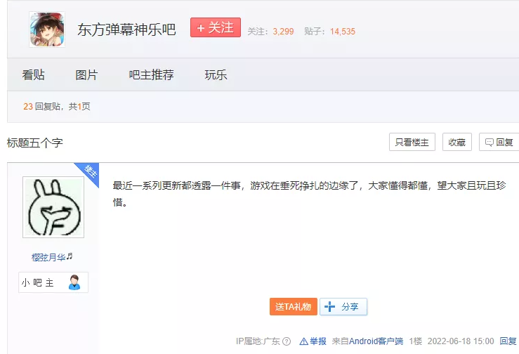 早在6月份,弹幕神乐贴吧的小吧主就嗅到了这游戏运营的不对劲味道,发帖让大家好自为之,且玩且珍惜。