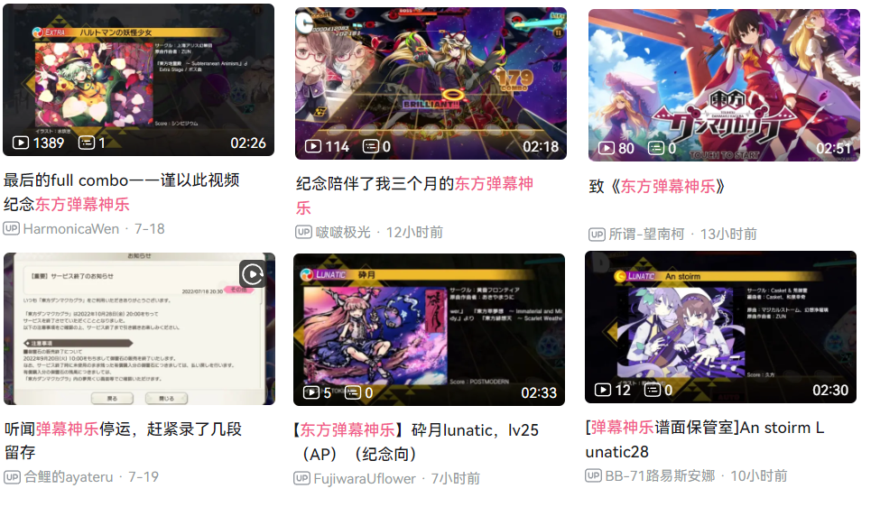 这几天,不少玩家已经开始投稿纪念视频,试图保存下他们在《东方弹幕神乐》中最后的痕迹。
