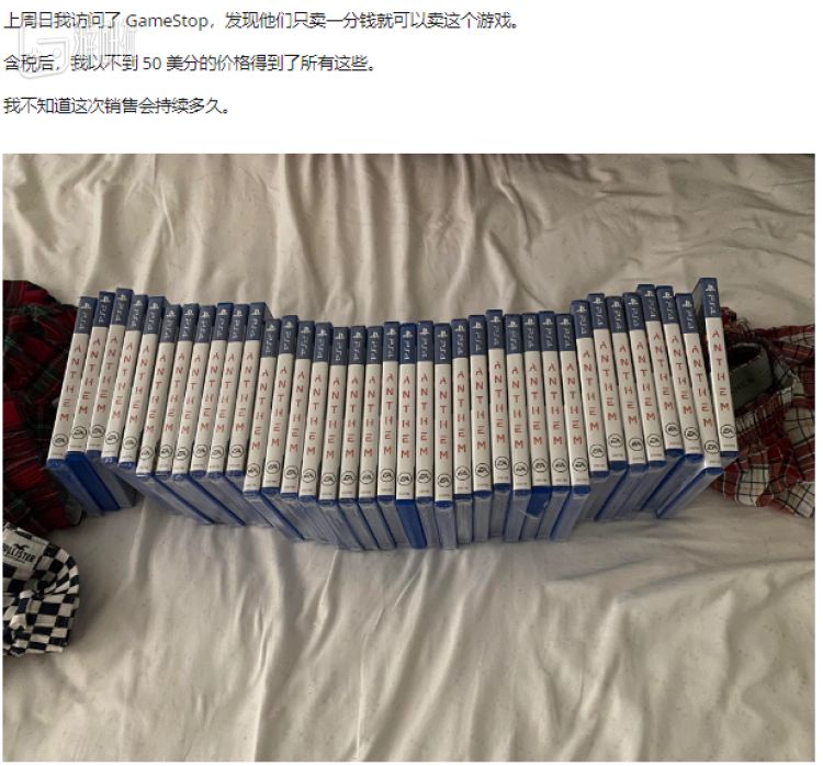 只是这还远远不是《圣歌》所能达到的最低价格,根据外媒Kotaku报道,最近在美国最大的游戏零售商店GameStop中就出现了标价0.01美金的《圣歌》。