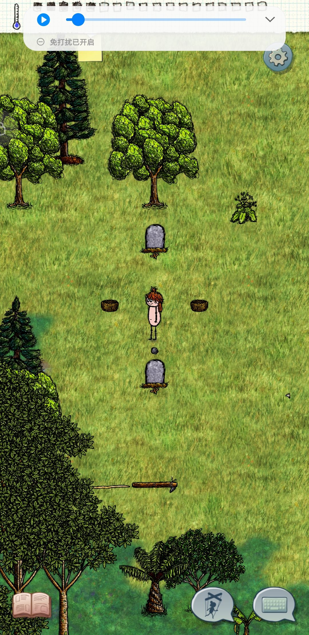 这片地形真挺好的 周围全是荒地 还在上面找到了一个铁矿脉和好多散铁 还有一个特别小的荒地上一只孤狼 它一直躲树后面不出来拒绝拍摄(bushi 所以就没截图