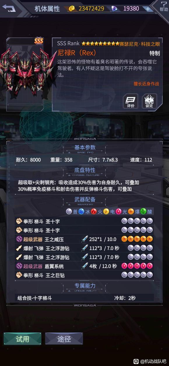 缺点,腿短,除了超必杀会位移,其他都是在跑路,没位移的机师,或者没减冷却的机师开,就显得很呆。底盘相对现在来说不够看,总觉得少了个什么加终伤,加减伤之类的,可能等以后超改再加属性底盘呢?拭目而待