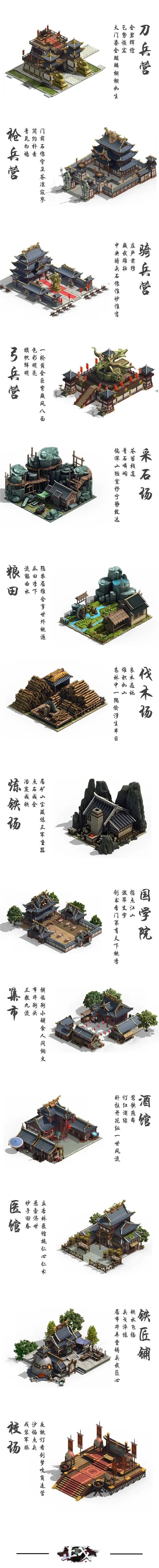 以下为《止戈》主城“在建”建筑的3D立绘图,“臻稀房源,所见即所得”。