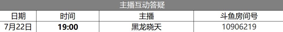 游戏主播黑龙晓天将在今晚19:00在斗鱼直播间:10906219,为大家带来全新版本的游戏答疑环节!为我们解答以下的【本周问题汇总】!